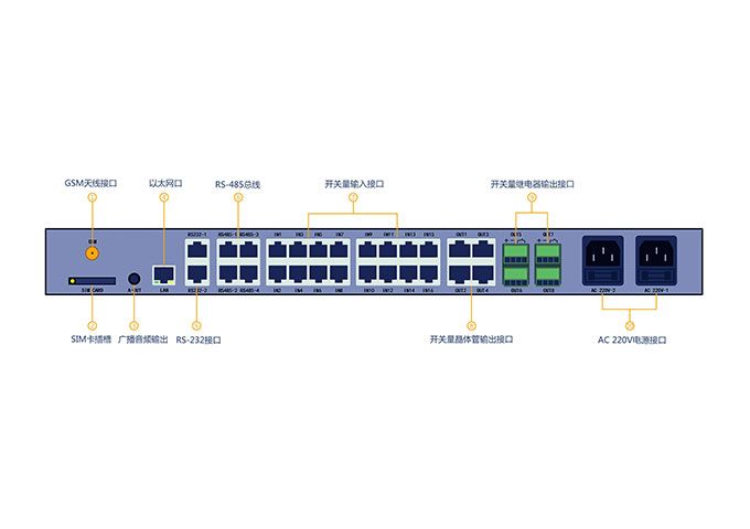 產(chǎn)品遵循一體化(ALL IN ONE)設計理念,搭載工業(yè)級32位高性能ARM處理器,Linux操作系統(tǒng), 采用B/S架構,提供便捷的嵌入式WEB服務。內(nèi)嵌監(jiān)控系統(tǒng)集成信息采集、分析處理、策略執(zhí)行、聯(lián)動控制、報表統(tǒng)計、日志記錄、智能告警等功能,無需依賴網(wǎng)絡、服務器及上位機軟件即可完成供配電、UPS、蓄電池、溫濕度、空調、漏水、新風機、煙感、消防、紅外防盜、視頻圖像等一體化綜合實時監(jiān)控管理。高度集成電話短信通訊模組及TTS語音合成服務,可通過電話語音、短信、郵件、現(xiàn)場廣播、聲光進行報警。被監(jiān)控傳感設備直接接入監(jiān)控主機,無需外接采控模塊和協(xié)議轉換模塊,且接口采用標準RJ45接口并附帶供電,由監(jiān)控主機集中為各種傳感器提供工作電源,停電狀態(tài)下能夠使用內(nèi)置后備電源獨立為主機和傳感器提供電,保證監(jiān)控系統(tǒng)持續(xù)穩(wěn)定運行。管理人員可直接通過瀏覽器和相應權限就可以實時查看監(jiān)控場地環(huán)境、設備參數(shù)、告警、報表、日志等信息,代替人工巡檢,實現(xiàn)無人值守,提高維護效率,降低管理成本。